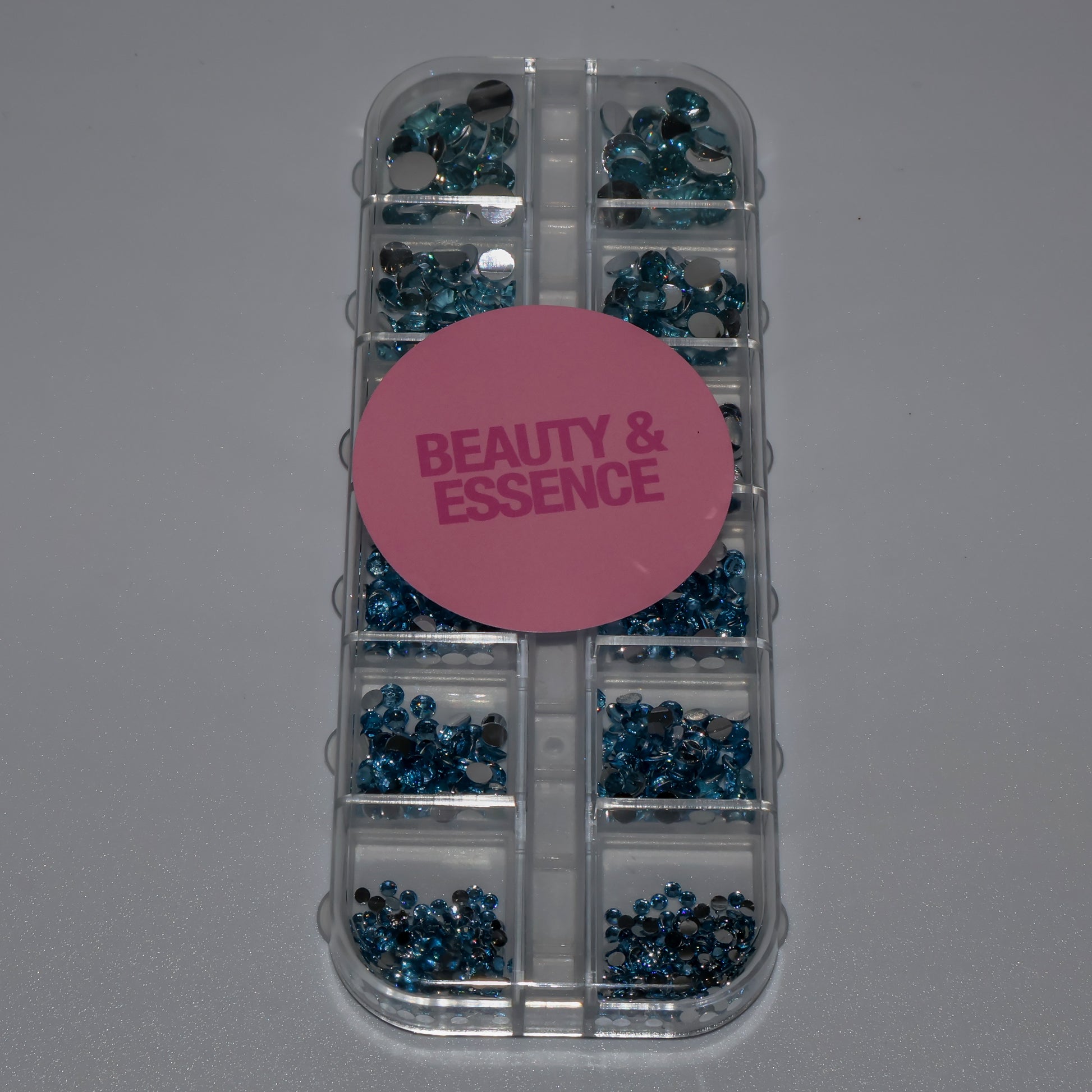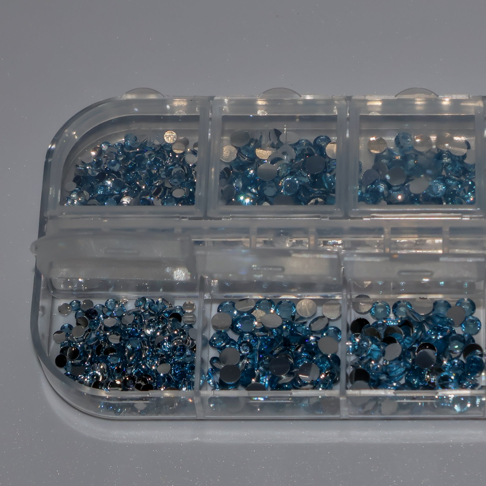 Paquete completo con 14 filas. Diferentes tamaños. Parte trasera plana y redonda. Cristal de calidad (no Swarovski).