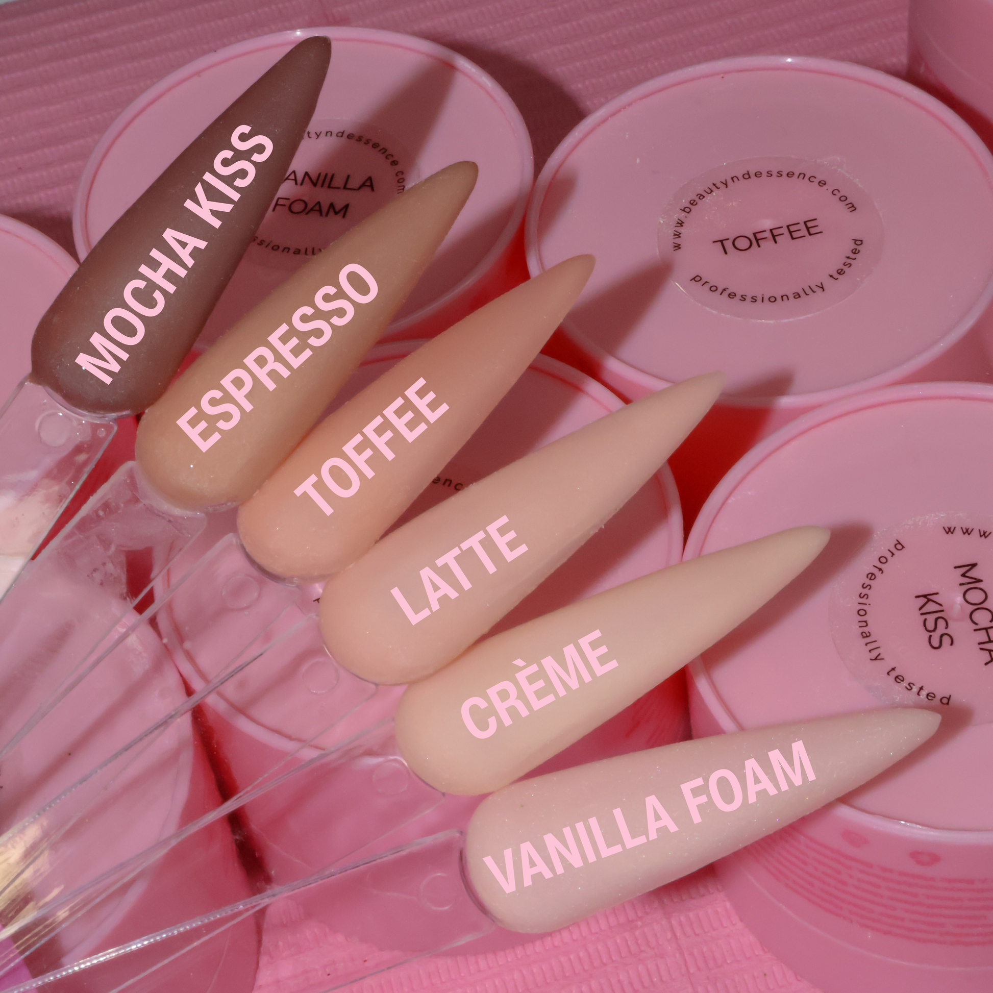 La colección Coffee incluye 6 polvos acrílicos pigmentados.