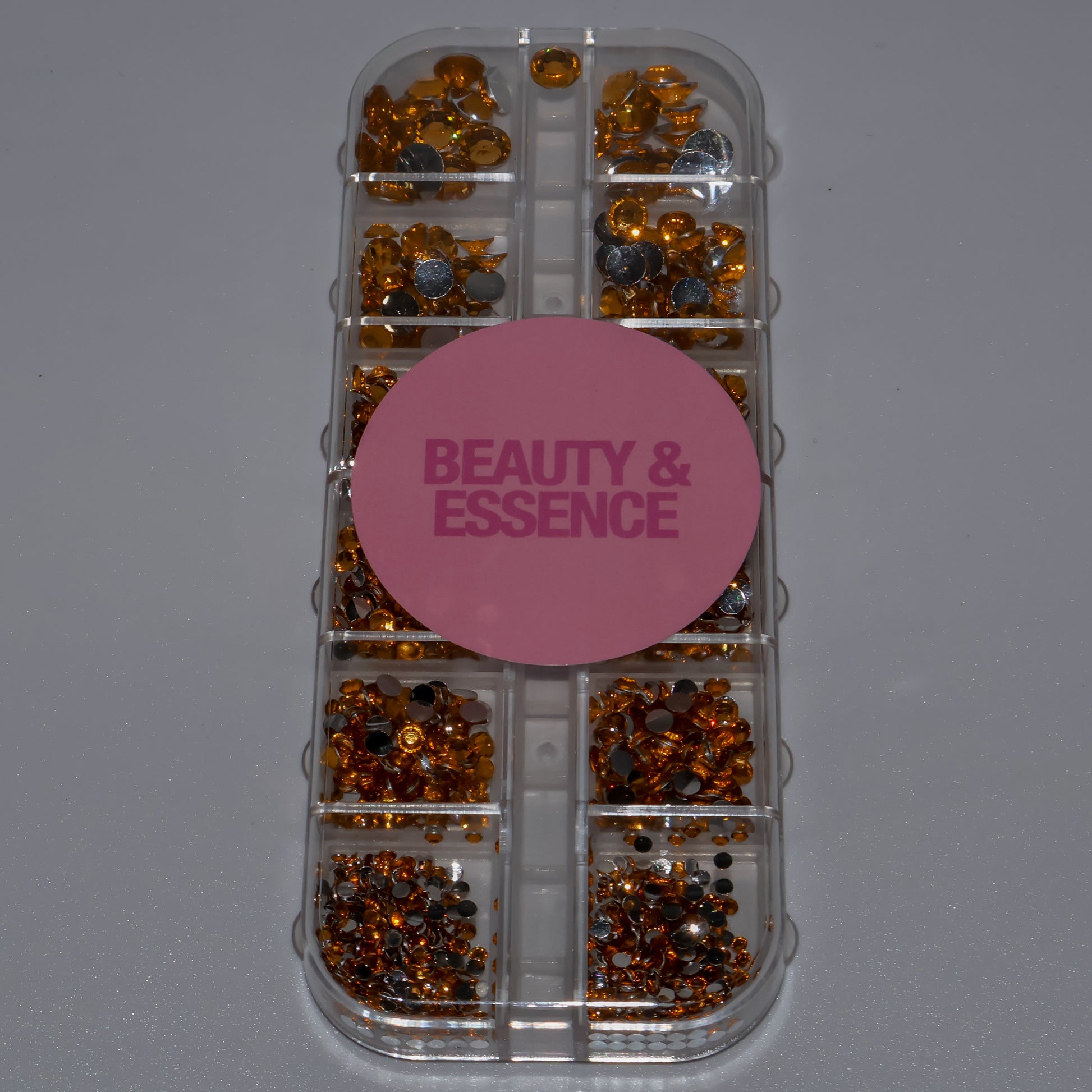 Paquete completo con 14 filas. Diferentes tamaños. Parte trasera plana y redonda. Cristal de calidad (no Swarovski).