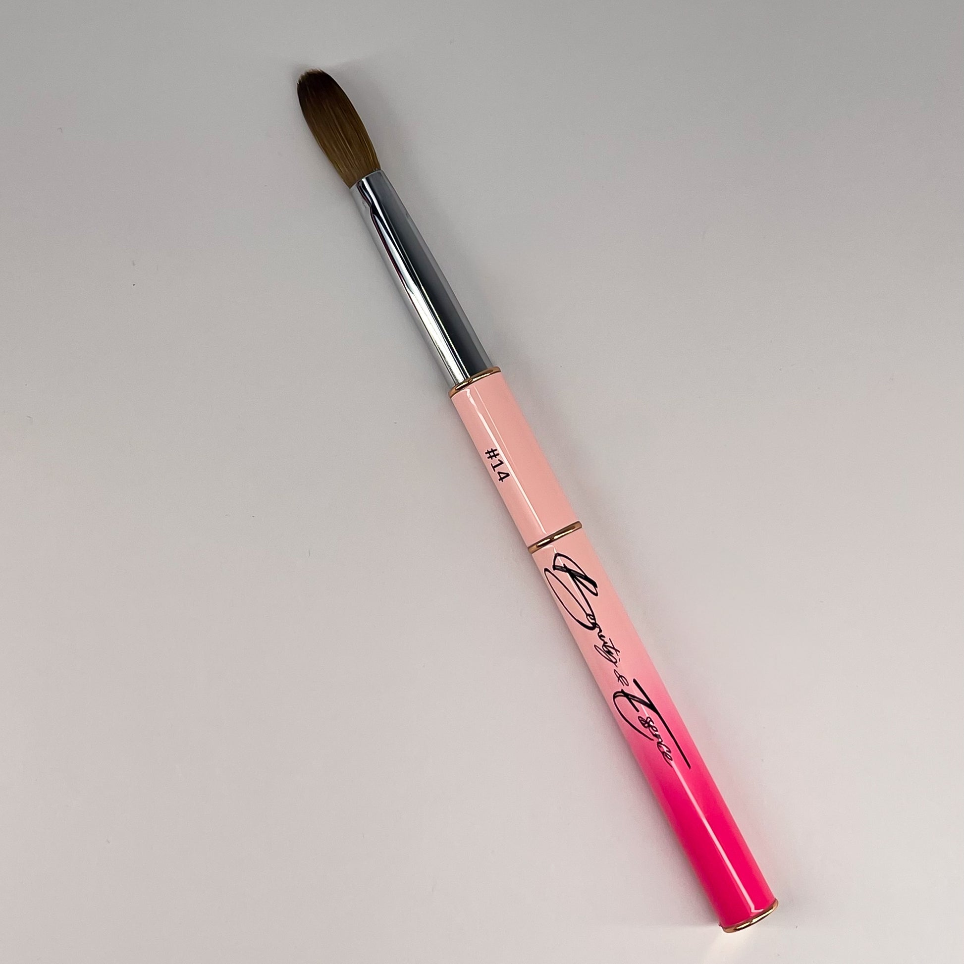 Two Toned Pink Acrylic Brush with Rose Gold Accents. 100% Grade A Kolinsky Hair Guaranteed Quality.