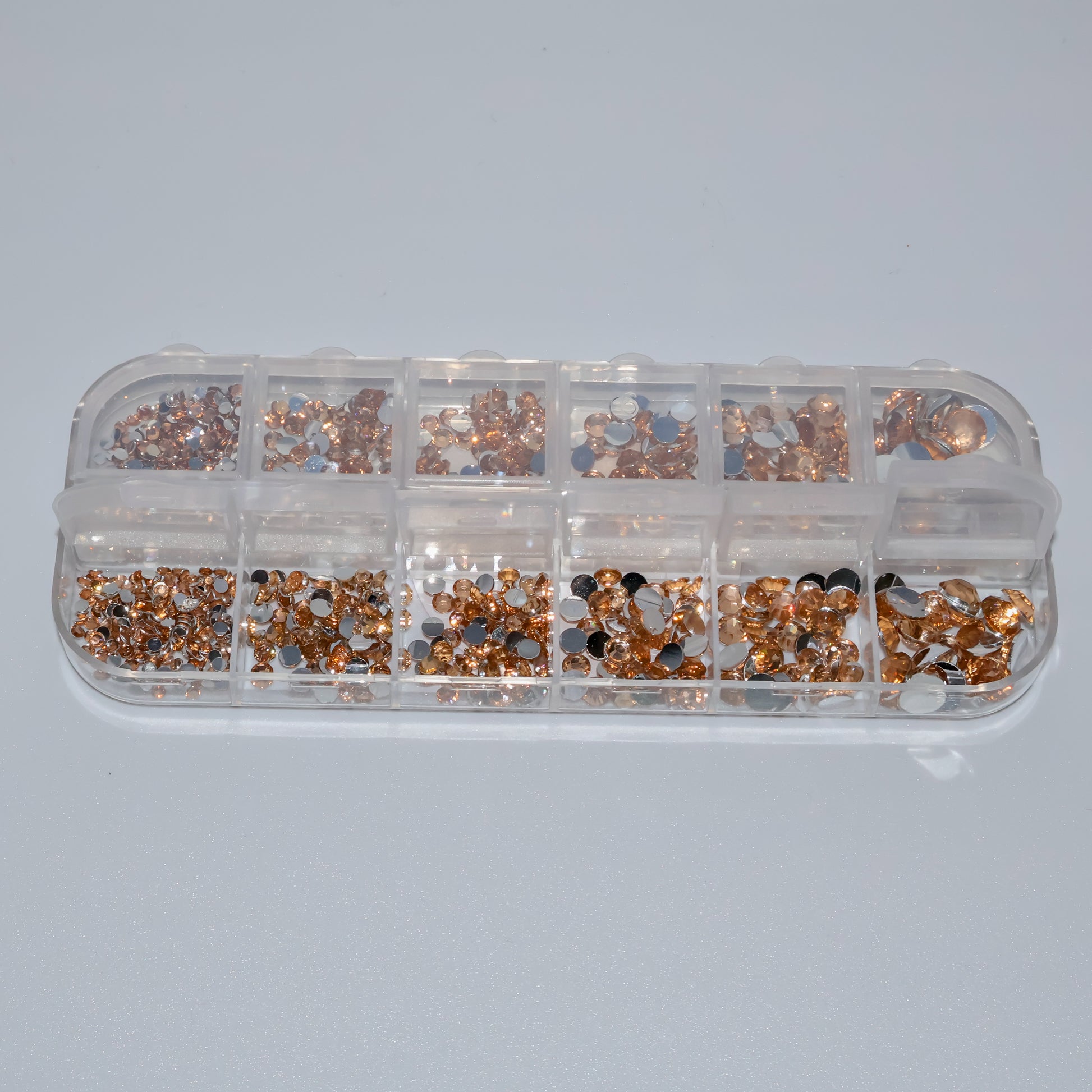 1 full pack with 14 rows. Different sizes. All round flat back. Quality crystal non swarovski.